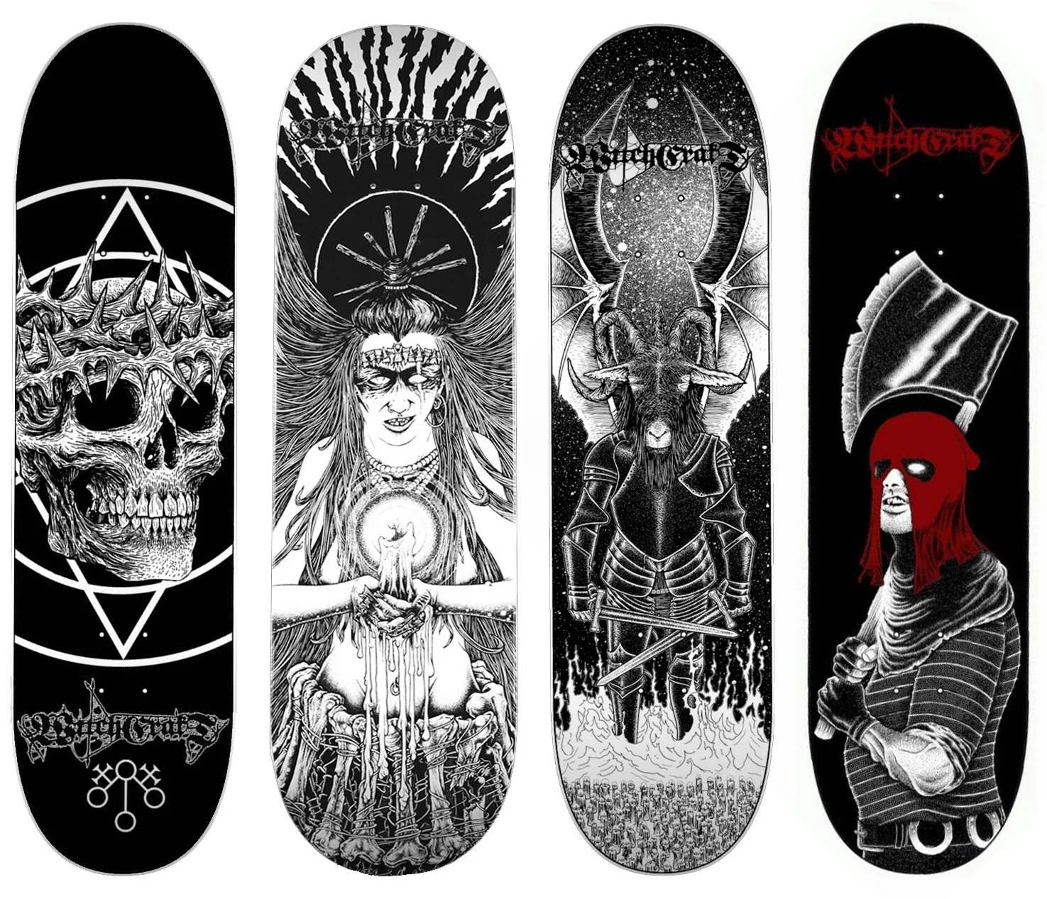 Skateboards and shirts for Witchcraft Hardware